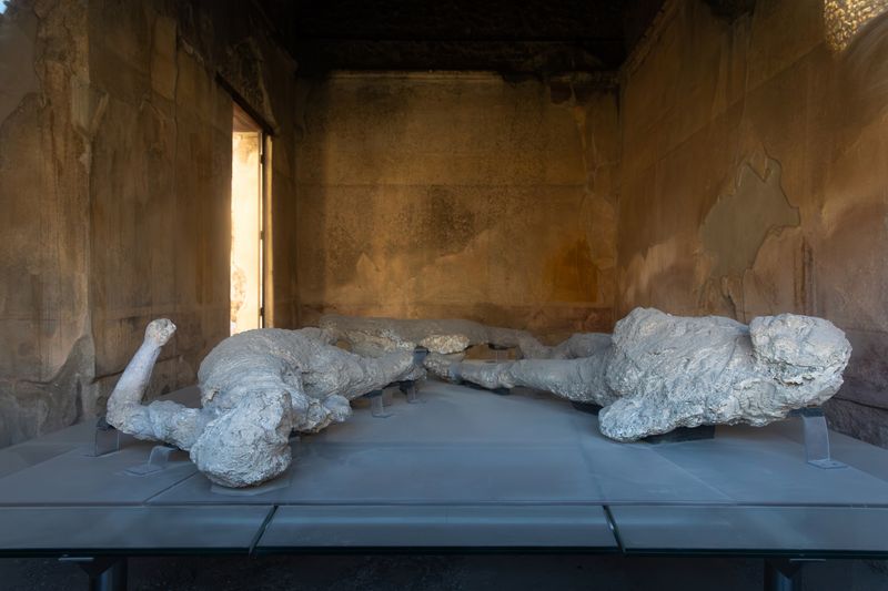 The once-thriving city of Pompeii, about 25 kilometres (15 miles) south-east of Naples, was buried in the eruption of Mount Vesuvius in AD 79, preserving buildings, objects and graffiti under metres of ash.