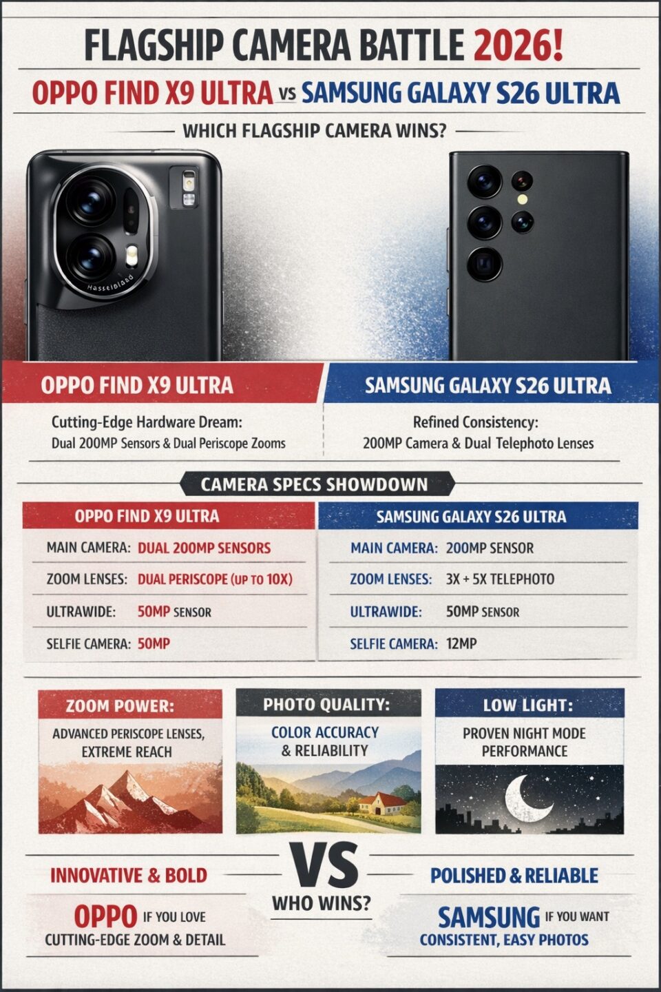 If you want dependable, polished photography, Samsung wins. If you want cutting-edge camera innovation and zoom flexibility, Oppo could take the crown, especially if its ambitious hardware delivers as expected.